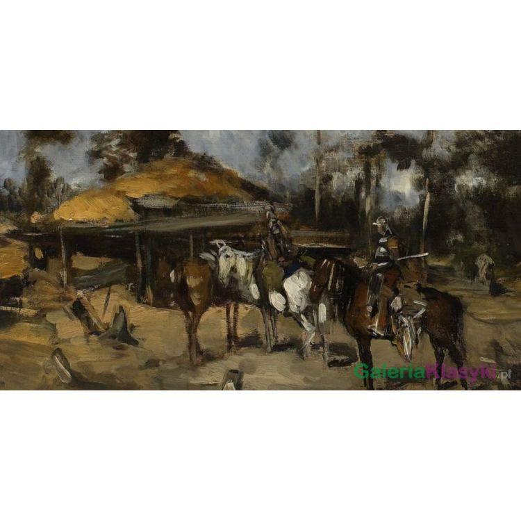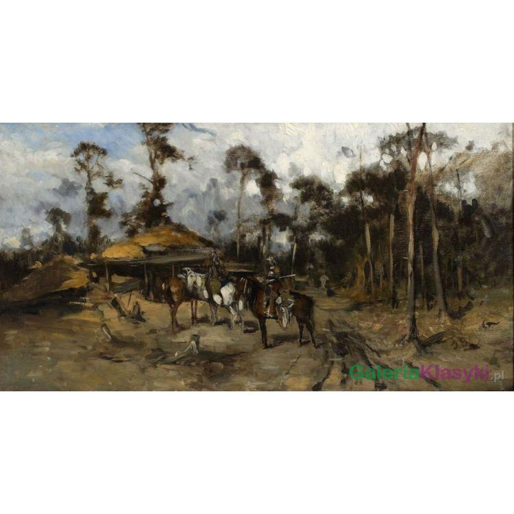 Reprodukcja obrazu: Jeźdźcy w lesie, szkic - Józef Brandt