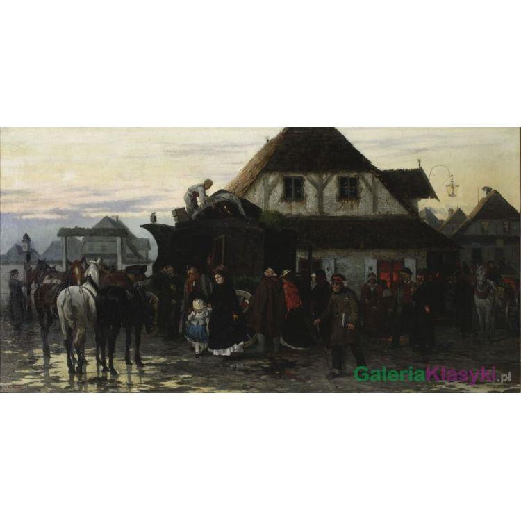 Reprodukcja obrazu: Przyjazd karetki pocztowej do miasteczka - Alfred Wierusz-Kowalski