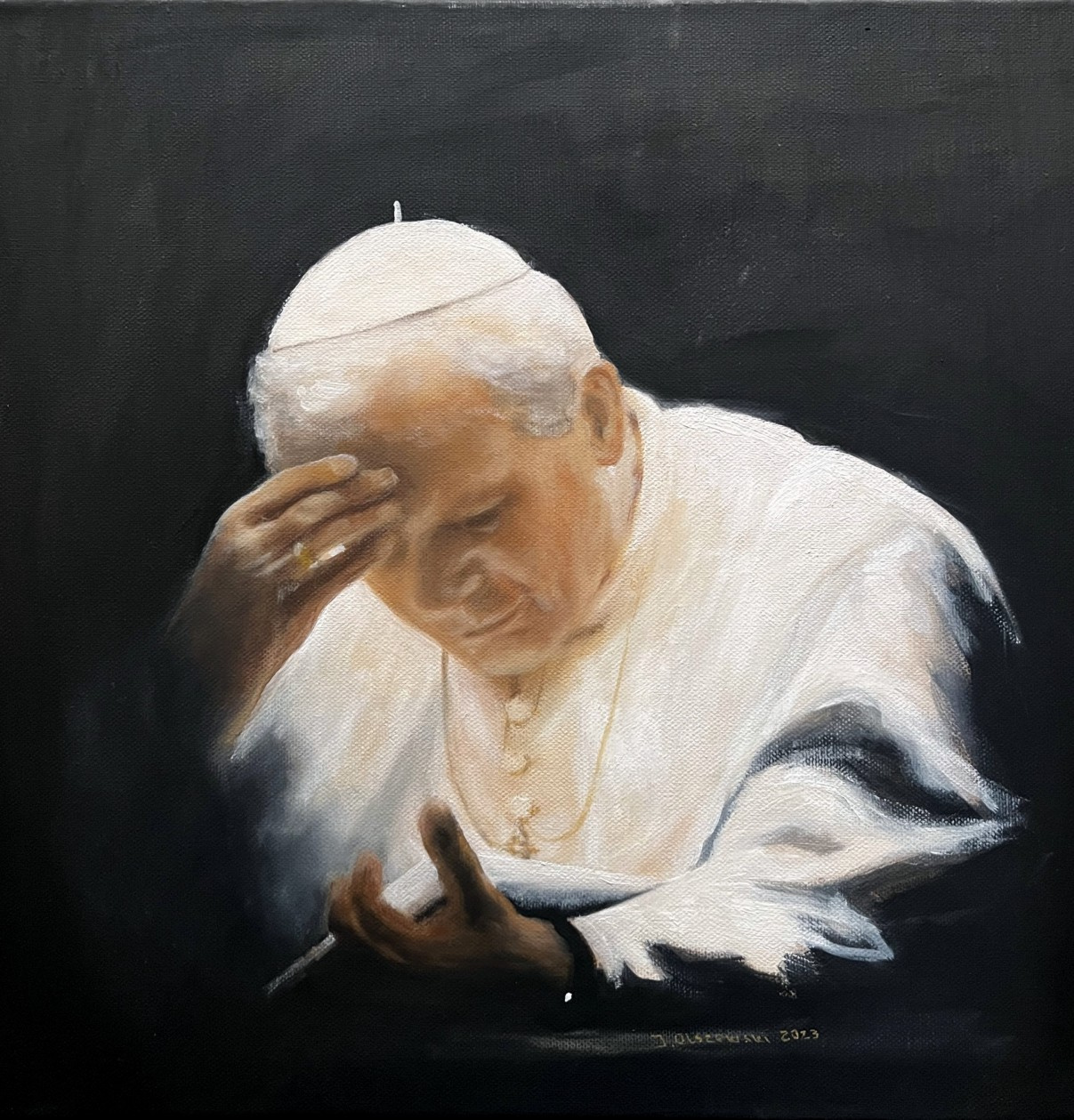 • Portret Świętego Jana Pawła II to hołd dla wielkiego Papieża - Polaka, który zdobył szacunek i miłość milionów ludzi na całym świecie. Obraz emanuje duchowym spokojem i mądrością, które charakteryzowały jego pontyfikat.