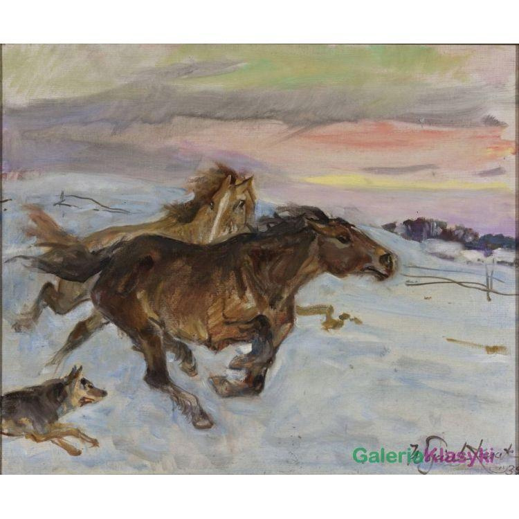 Ucieczka koni przed wilkiem - Wojciech Kossak