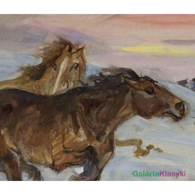 Reprodukcja obrazu: Ucieczka koni przed wilkiem - Wojciech Kossak