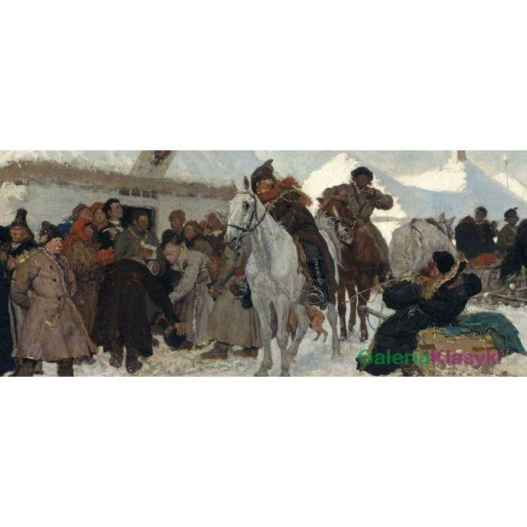 Rozmiar reprodukcji obrazu jest propozycją, która proporcjami może nieco się różnić od oryginału. Za ważniejszy przyjmujemy dłuższy bok obrazu. Oprawiony obraz mierzy się wewnętrzną stroną ramy. Zewnętrzne wymiary zależne są od rodzaju listwy.